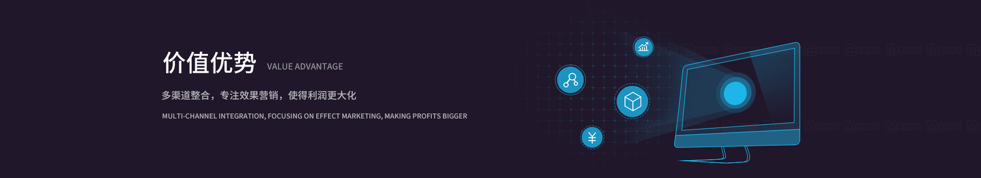 ![]() | 我们的整合策略营销执行团队 OUR INTEGRATED STRATEGY MARKETING EXECUTIVE TEAM 我们以100人的专业团队,通过对策略、创意、媒介整合和行业发展的深度洞察,建立与之匹配的联动团队,发挥强大的聚合效应,帮助您精准锁定核心目标,减少风险,降低运营成本并确保利润的更大化。 Our professional team of 100 people, through the depth of insight into the development of the strategy, creative, media integration and industry, establish linkage team match play, strong aggregation effects, help you pinpoint the core goal, reduce risk, reduce operating costs and ensure the maximization of profit. |